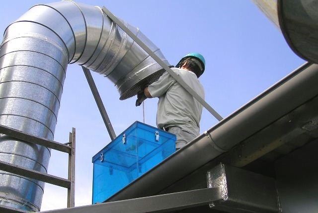 工場屋上へ排気される
